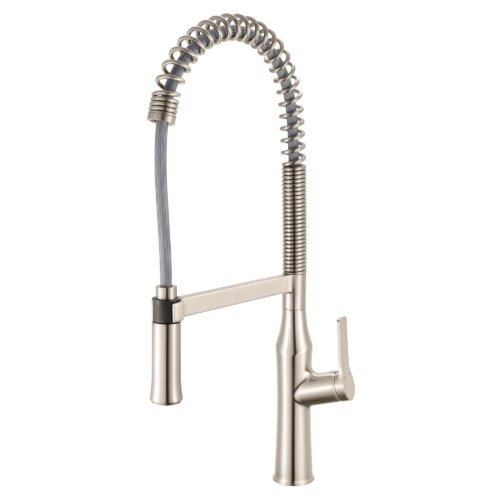 Ruvati Seneca Stainless Steel Single Handle Pull Down Kitchen Faucet Tall Spring Commercial with Pre-Rinse Sprayer – RVF1233BN
