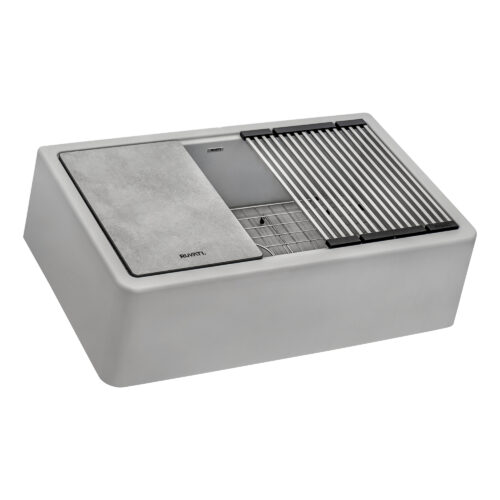 Ruvati 33-inch Matte Gray Farmhouse Granite Composite Quartz Workstation Apron-front Kitchen Sink – RVG1533GR