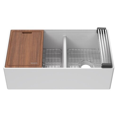 Ruvati 33 inch Fireclay Workstation White Farmhouse Kitchen Sink Apron Front Double Bowl – RVL2382WH