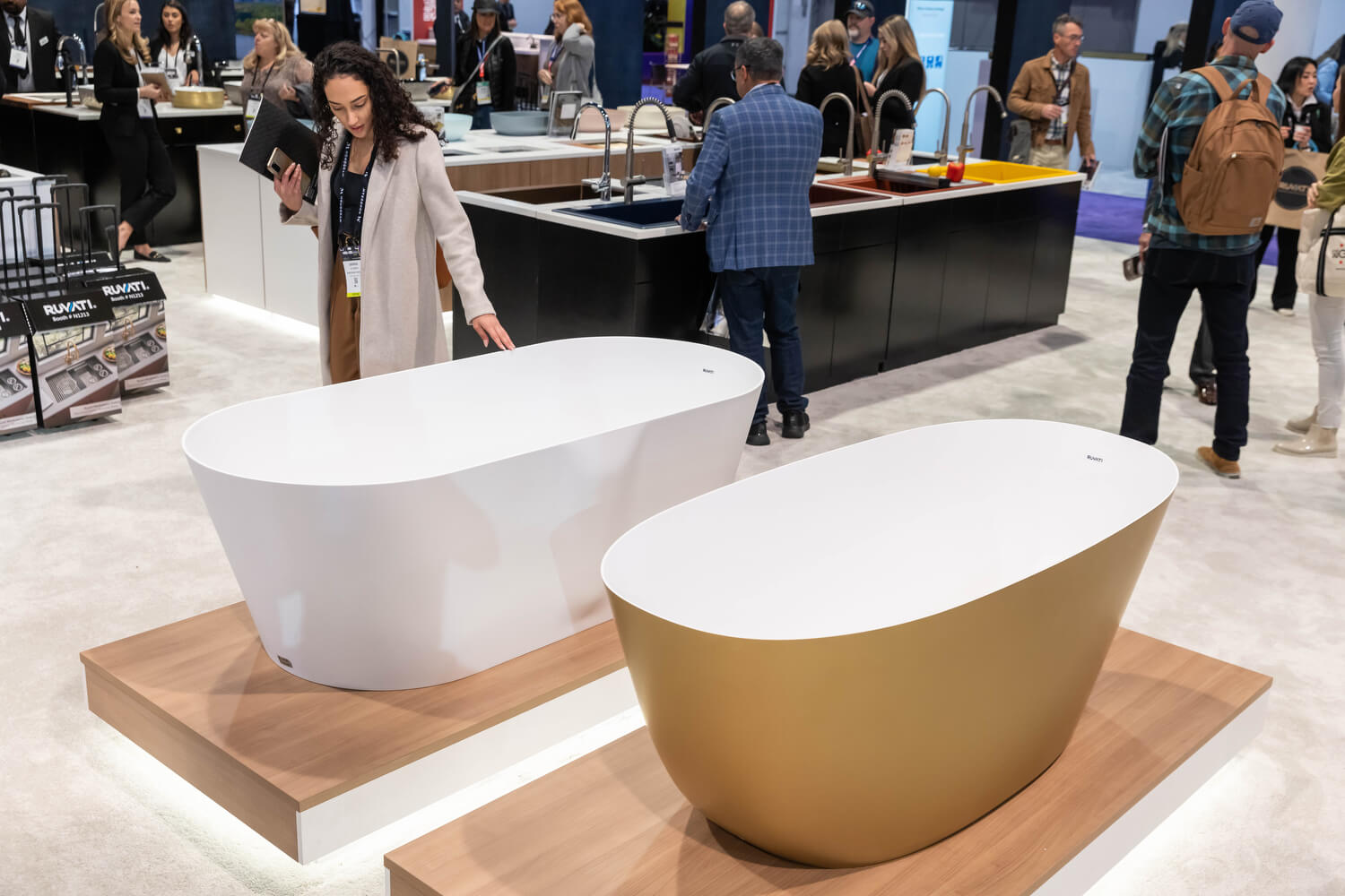 The company’s Freestanding Bathtubs also stole the spotlight, with a 59-inch white solid surface oval tub that emphasized sleek, clean lines, making it a perfect fit for contemporary bathroom designs. Throughout KBIS 2023, Ruvati’s offerings demonstrated their commitment to high-quality, stylish fixtures that blend functionality with luxury.