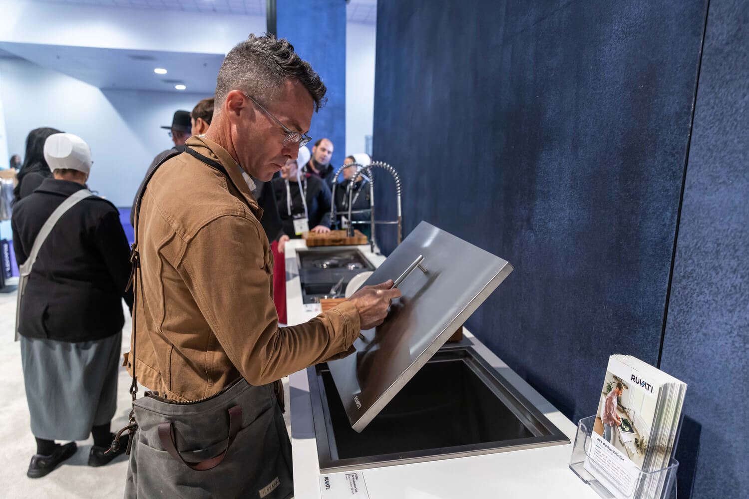 Ruvati also introduced the Merino Outdoor Workstation Sink & Ice Chest, a marine-grade stainless steel sink perfect for outdoor kitchens and BBQs. This sink featured a double-wall-insulated ice chest that could keep ice frozen for up to 24 hours, along with cutting boards, colanders, and a bottom rinse grid, making it ideal for outdoor gatherings.