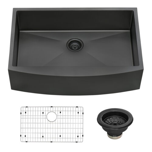 Ruvati 33-inch Apron-Front Farmhouse Kitchen Sink – Gunmetal Black Matte Stainless Steel Single Bowl – RVH9733BL