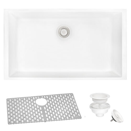 Ruvati 32 x 19 inch epiGranite Undermount Granite Composite Quartz Single Bowl Kitchen Sink – Arctic White Matte – RVG2033WH
