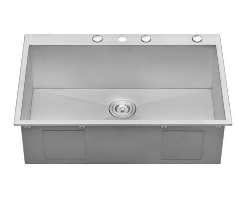 Ruvati 33 x 22 inch Drop-in Topmount 16 Gauge Zero Radius Stainless Steel Kitchen Sink Single Bowl – 4 holes – RVH8001