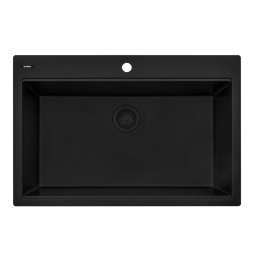 Ruvati 33 x 22 inch epiGranite Drop-in Topmount Granite Composite Quartz Single Bowl Kitchen Sink – Midnight Black- RVG11080BK