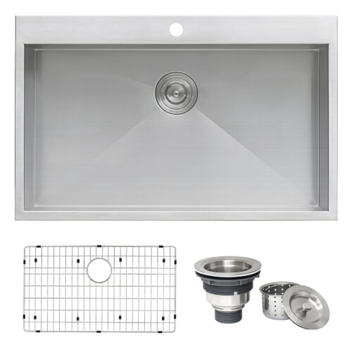 Ruvati 33 x 22 Drop-in Topmount 16 Gauge Zero Radius Stainless Steel Kitchen Sink Single Bowl – 1 hole – RVH8000