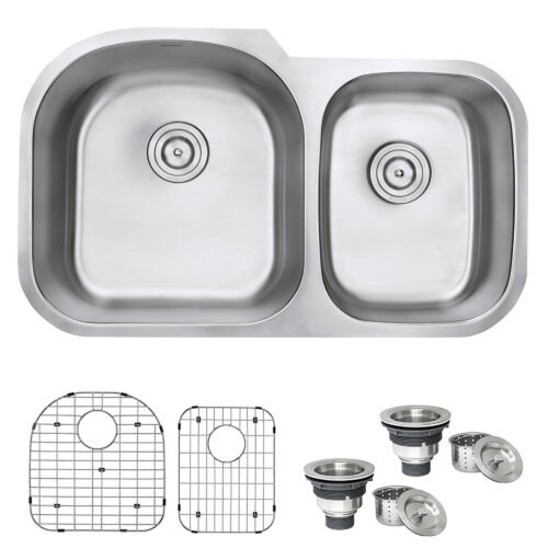 Ruvati 34-inch Undermount 60/40 Double Bowl 16 Gauge Stainless Steel Kitchen Sink – RVM4600