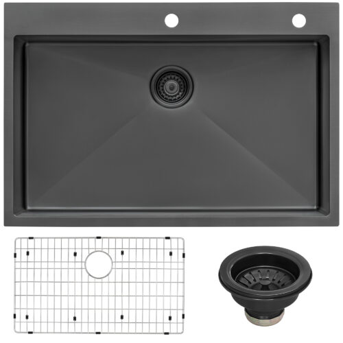 Ruvati 33 x 22 inch Gunmetal Black Stainless Steel Drop-in Topmount Kitchen Sink 16 Gauge Single Bowl – RVH5005BL