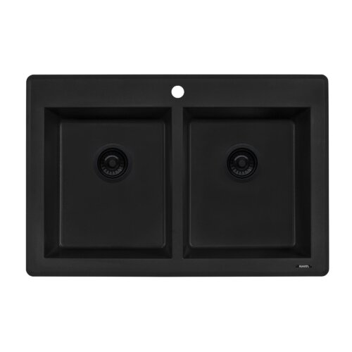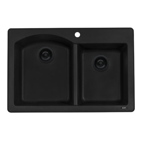 Ruvati 33 x 22 inch epiGranite Drop-in Topmount Granite Composite Quartz Double Bowl Kitchen Sink – Midnight Black – RVG1388BK