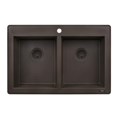 Ruvati 33 x 22 inch epiGranite Drop-in Topmount Granite Composite Quartz Double Bowl Kitchen Sink – Espresso Brown – RVG1388ES