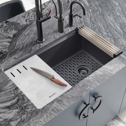 Ruvati 15 x 17 inch Granite Composite Quartz Undermount Single Bowl Wet Bar Prep Sink – Midnight Black – RVG2016BK