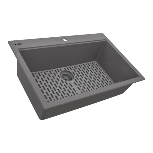 Ruvati 33 x 22 inch epiGranite Drop-in Topmount Granite Composite Quartz Single Bowl Kitchen Sink – Urban Gray – RVG1080UG