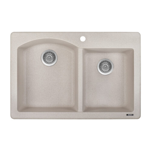 Ruvati 33 x 22 inch epiGranite Drop-in Topmount Granite Composite Quartz Double Bowl Kitchen Sink – Caribbean Sand – RVG1344CS