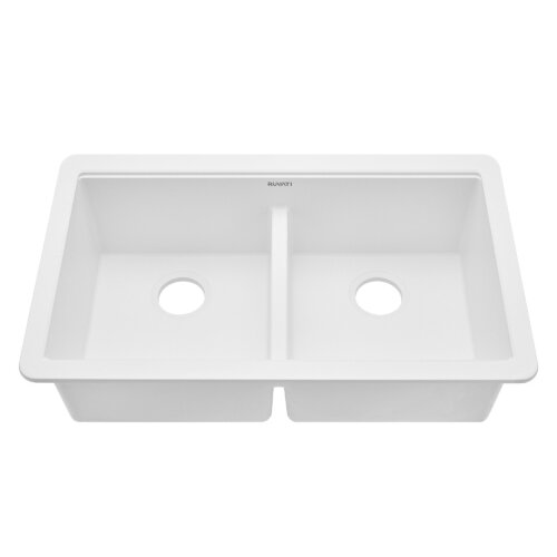 Ruvati 33 x 19 inch Granite Composite Quartz Undermount Double Bowl Low Divide Kitchen Sink – Arctic White Matte – RVG2385WH