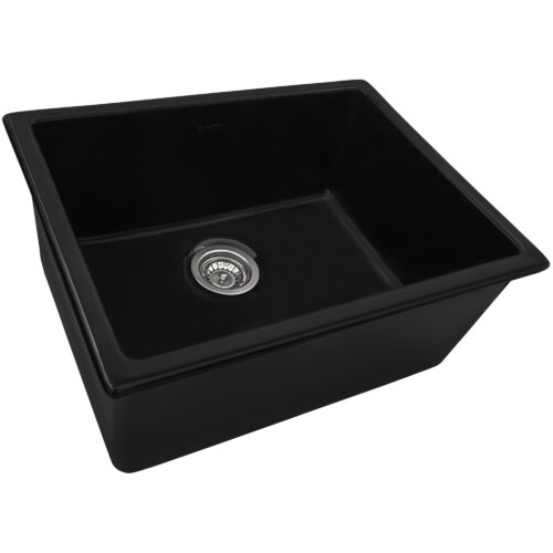 Ruvati 24-inch Fireclay Undermount / Drop-in Topmount Kitchen Sink Single Bowl – Glossy Black – RVL2420BK