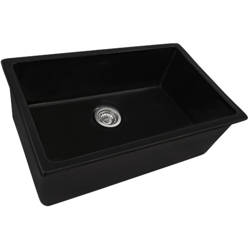 Ruvati 30-inch Fireclay Undermount / Drop-in Topmount Kitchen Sink Single Bowl – Glossy Black – RVL3030BK