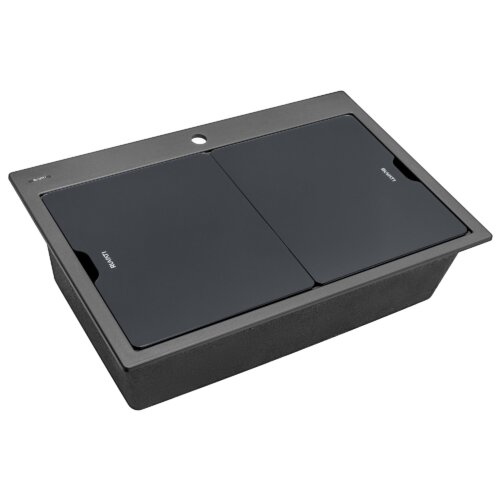 Ruvati LedgeFit 2-Piece Black Glass Cutting Board and Sink Cover Set for Ruvati Workstation Sinks 17 x 15 inch – RVA1206GBB