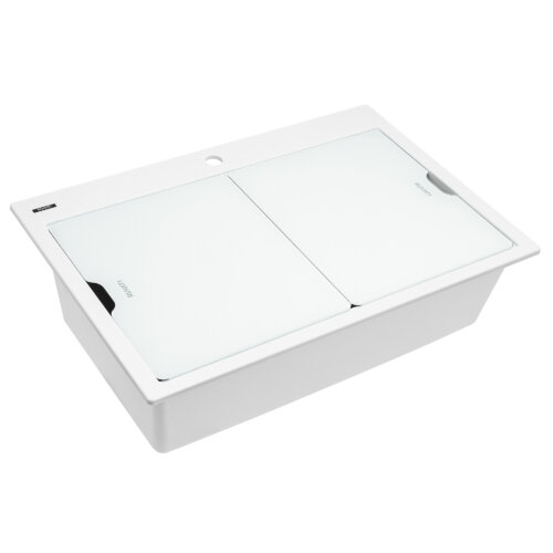 Ruvati LedgeFit 2-Piece White Glass Cutting Board and Sink Cover Set for Ruvati Workstation Sinks 17 x 15 inch – RVA1206GLW