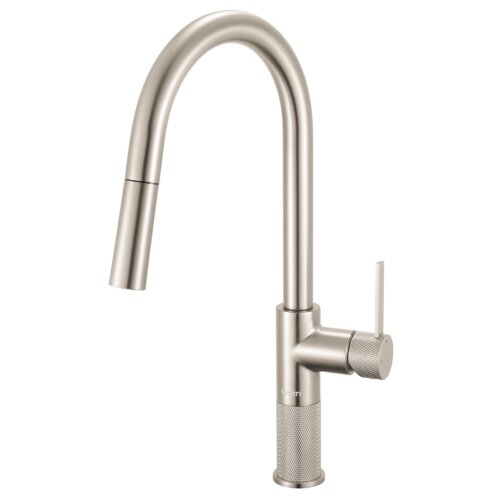 Ruvati Isola Single Handle Pull Down Kitchen Faucet Knurling Contemporary Tall Arc in Stainless Steel – RVF1248BN