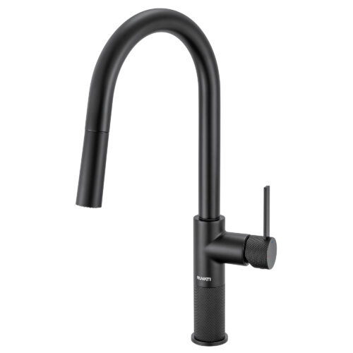 Ruvati Isola Single Handle Pull Down Kitchen Faucet Modern Knurled with Sprayer in Matte Black – RVF1248MB