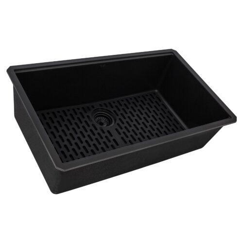 Ruvati 32 x 19 inch Granite Composite Quartz Undermount Single Bowl Kitchen Sink – Midnight Black – RVG2080BK