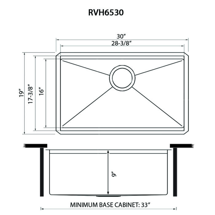 - INTERIOR BOWL DIMENSIONS: 28 3/8″ (wide) x 16″ (front to back) x 9″ (bowl,depth)