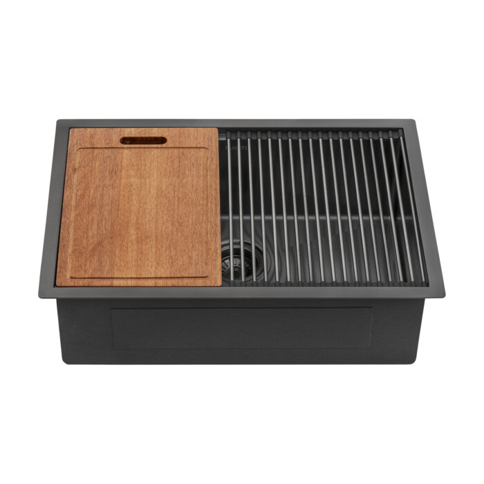 Ruvati 30-inch Gunmetal Black Stainless Steel Workstation Undermount Kitchen Sink Single Bowl – RVH165301BL