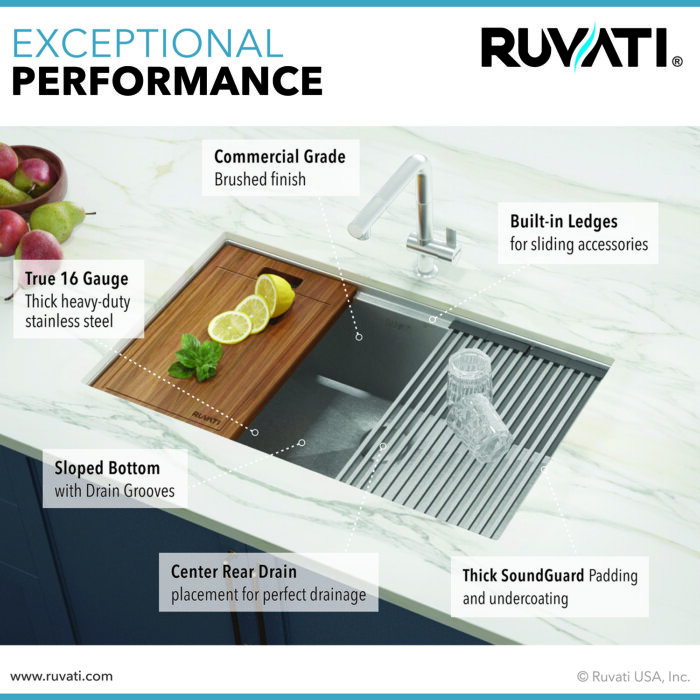 Be the first to review “Ruvati 32-inch Workstation Ledge Undermount 16 Gauge Stainless Steel Kitchen Sink Single Bowl – RVH183001LM”