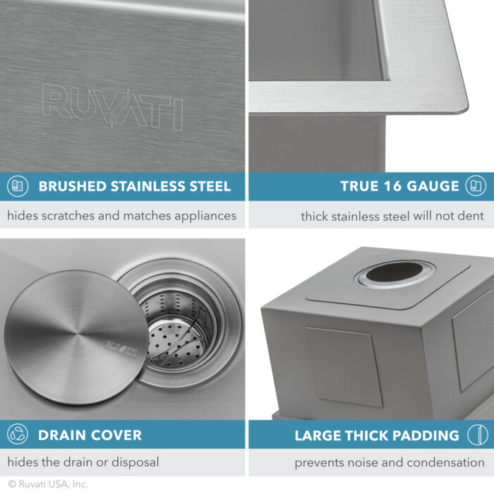 Be the first to review “Ruvati 13 inch Workstation Bar Prep Sink with Cover Undermount 16 Gauge Stainless Steel Single Bowl – RVH8316”