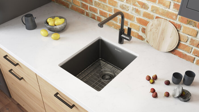 With an innovative nano-PVD finish, the Terraza collection from Ruvati brings color to the world of stainless steel. Offered in gold, copper, and black, the stainless steel is overlaid with a beautiful color finish and matte texture that is resistant to fingerprints, wear, and abrasion. With single and double bowl sinks available in a variety of installation options, each sink in this collection will also feature a bottom rinse grid for added protection. Matching your sink to your kitchen accents and appliances has never been easier than with our Terraza collection.