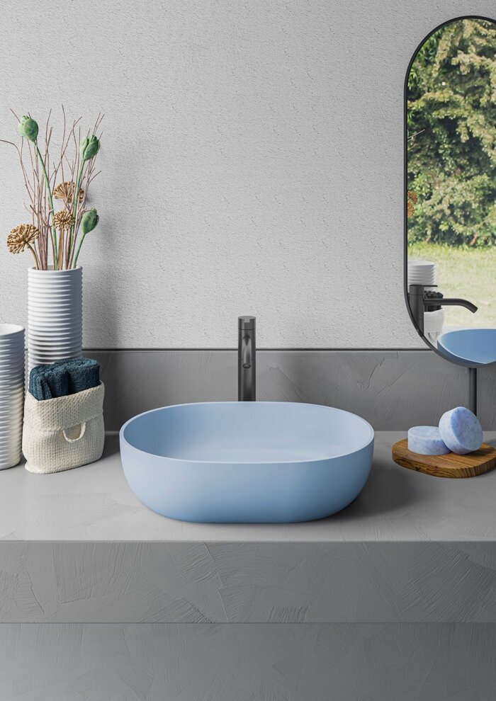 Ruvati delivers a new shade of modernity with the release of their Canali bathroom sink collection constructed of epiStone material. Made in Italy, epiStone is developed using state-of-the-art technology to achieve exceptional strength and beauty for the bathroom space. It is composed of 70% crushed minerals and natural stone bonded with a proprietary resin that gives the material its strength and durability. Naturally beautiful with a look similar to real stone, the epiStone material presents a luxurious satin finish that is silky to the touch. EpiStone bathroom sinks from Ruvati feature a modern vessel shape and bold color options that are bound to draw the eye. The matte black and stylish white epiStone sinks offer a twist on tradition and appear much sleeker and more contemporary than traditional porcelain bathroom sinks. Looking for something even more unique? Ruvati epiStone sinks are also available in eye-catching colors like a light pink called Sedona Clay, Avocado Lime Green, and Pacific Blue. We all could use a pop of color, and these luxurious statement pieces are built to inspire your bathroom renovation.