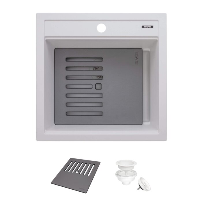 Ruvati 20-inch epiCube Granite Composite Quartz Workstation Drop-in Topmount Wet Bar Prep Sink Arctic White Matte – RVG1620WH