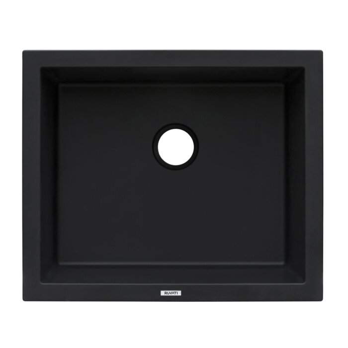 Ruvati 21 x 18 inch Granite Composite Quartz Undermount Single Bowl Wet Bar Prep Sink – Midnight Black – RVG2021BK