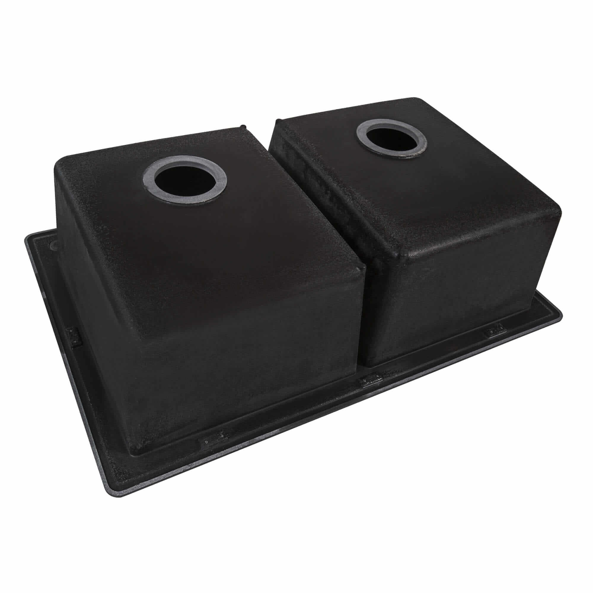 Ruvati 32 x 19 inch Granite Composite Quartz Undermount Double Bowl Kitchen Sink – Midnight Black – RVG2388BK