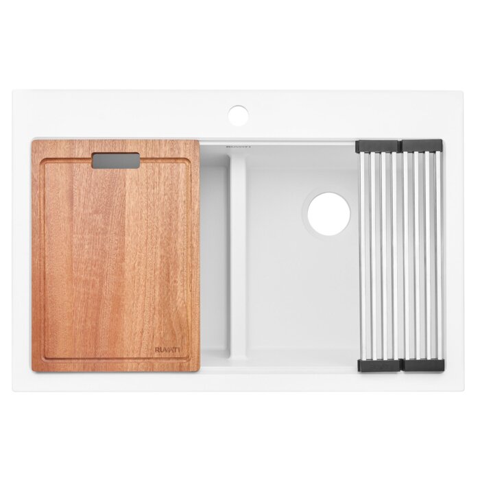 - INCLUDED IN BOX: Sink, solid composite cutting board, stainless steel foldable drying rack, mounting clips.