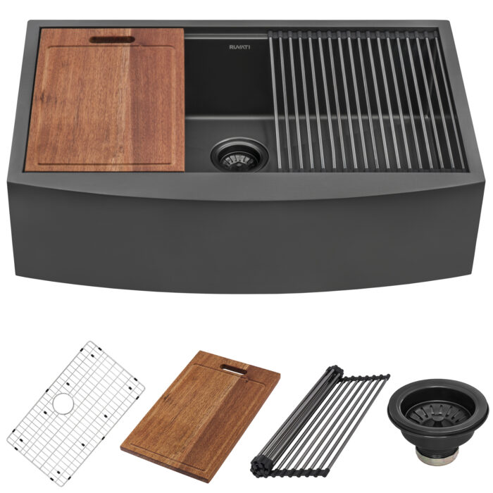 Ruvati 33-inch Gunmetal Black Workstation Apron-Front Stainless Steel Kitchen Sink – RVH9207BL