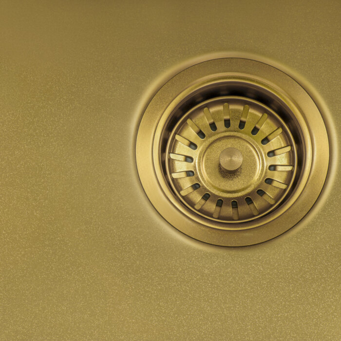 - INCLUDES MATCHING DRAIN: Strainer drain assembly with gold finish – standard 3.5″ drain opening will fit any garbage disposal unit (Matching garbage disposal flange [Model # RVA1041GG] sold separately).