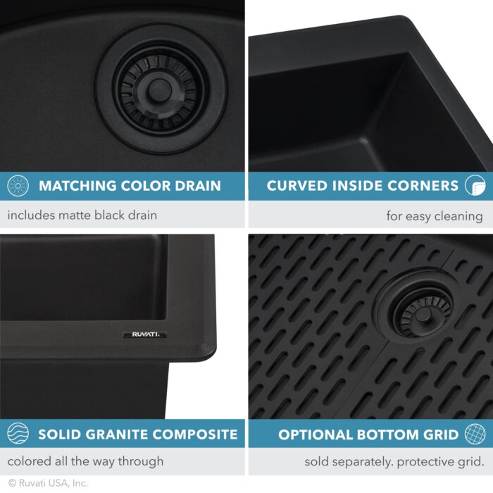 Ruvati 32-inch Undermount Workstation Granite Composite Quartz Kitchen Sink Matte Black – RVG2306BK