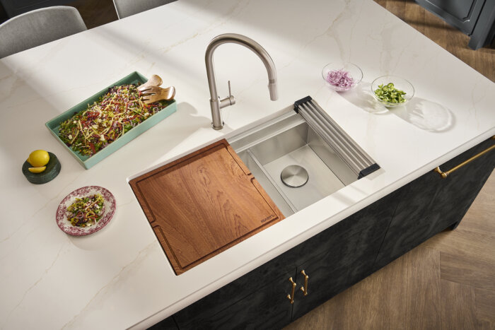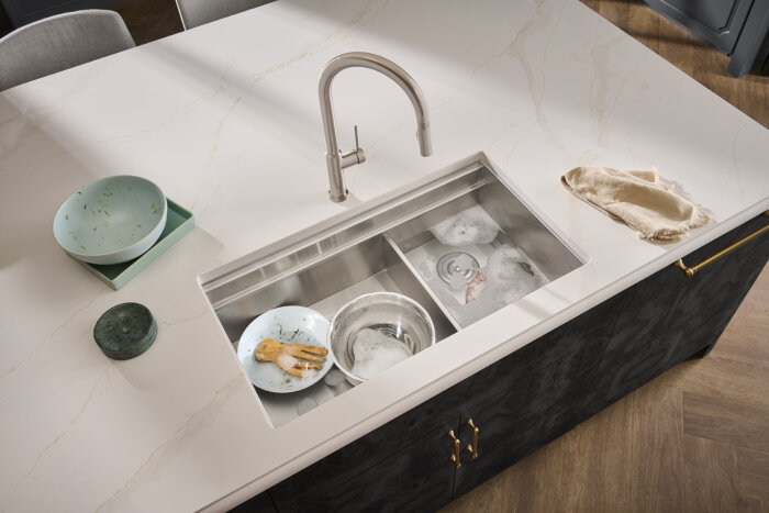 Ruvati 33-inch Workstation Dual Tier Double Bowl Low Divide Undermount 16 Gauge Stainless Steel Kitchen Sink – RVH8255
