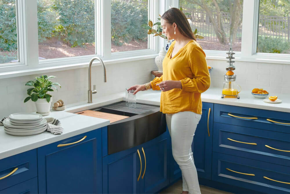 Find a workstation sink to match your kitchen appliances! With our innovative nano-PVD technology, the Monaco collection introduces a splash of color to apron front workstation sinks.