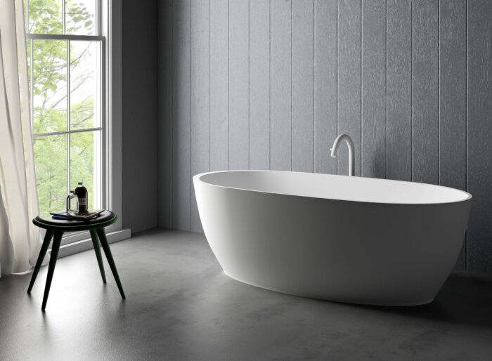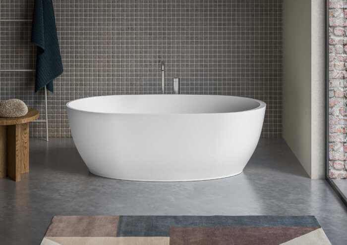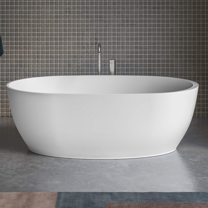 Ruvati 59-inch Matte White epiStone Solid Surface Oval Freestanding Bath Tub Canali – RVB6744WH