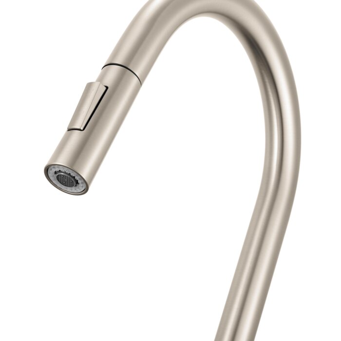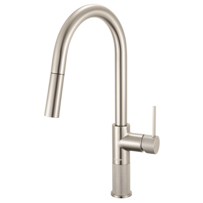 The Isola Collection by Ruvati delivers refined functionality with a distinctive, modern edge. A pull-out sprayer provides versatile cleaning power, while the arched spout and knurling detail add texture and visual interest. The extended 360° swivel spout easily handles oversized cookware, and the single lever handle ensures smooth operation in compact spaces. Available in spot-free brushed nickel, matte black, or brushed gold, each Isola faucet resists stains and water spots to maintain a flawless, easy-to-clean finish.
