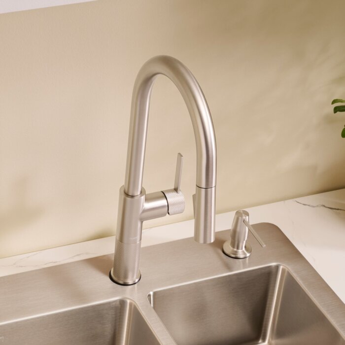 - PULL-OUT FAUCET: Features a retractable pull-out sprayer for versatile cleaning and targeted water flow.