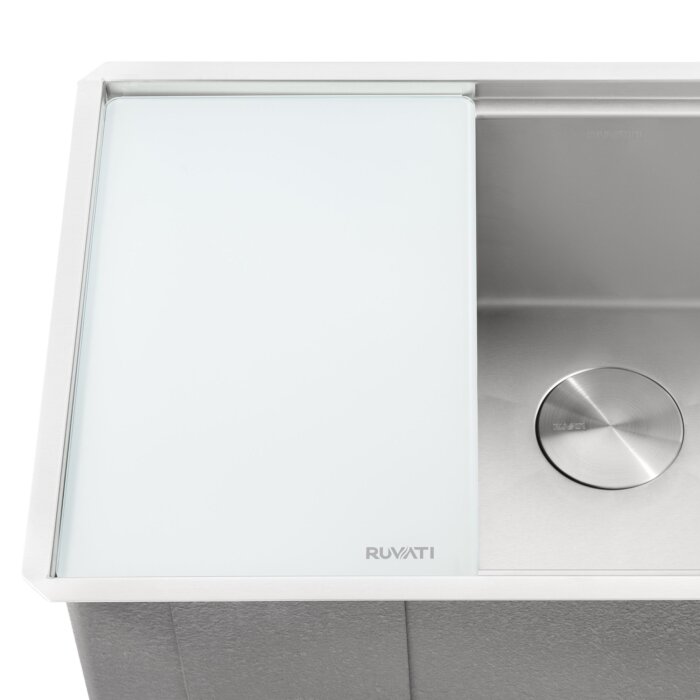 Ruvati LedgeFit White Tempered Glass Cutting Board for Ruvati Workstation Sinks 17 x 11 inch – RVA1217GLW