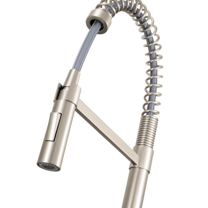 Ruvati Seneca Single Handle Pull Down Modern Kitchen Faucet with Pre-Rinse Sprayer in Stainless Steel – RVF1243BN