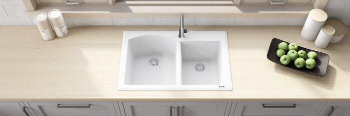 Be the first to review “Ruvati 33 x 22 inch epiGranite Drop-in Topmount Granite Composite Quartz Double Bowl Kitchen Sink – Arctic White Matte – RVG1344WH”