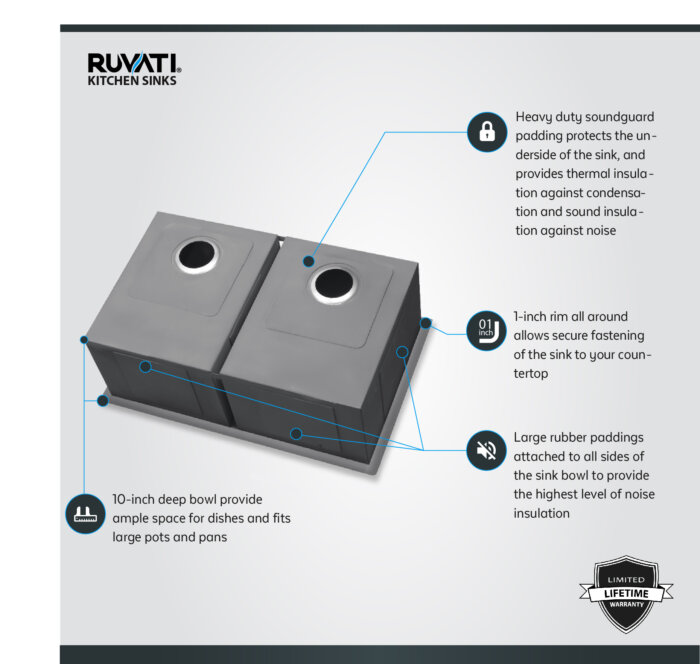 - LARGE DOUBLE BOWL: 30-inch sink gives you plenty of usable space.