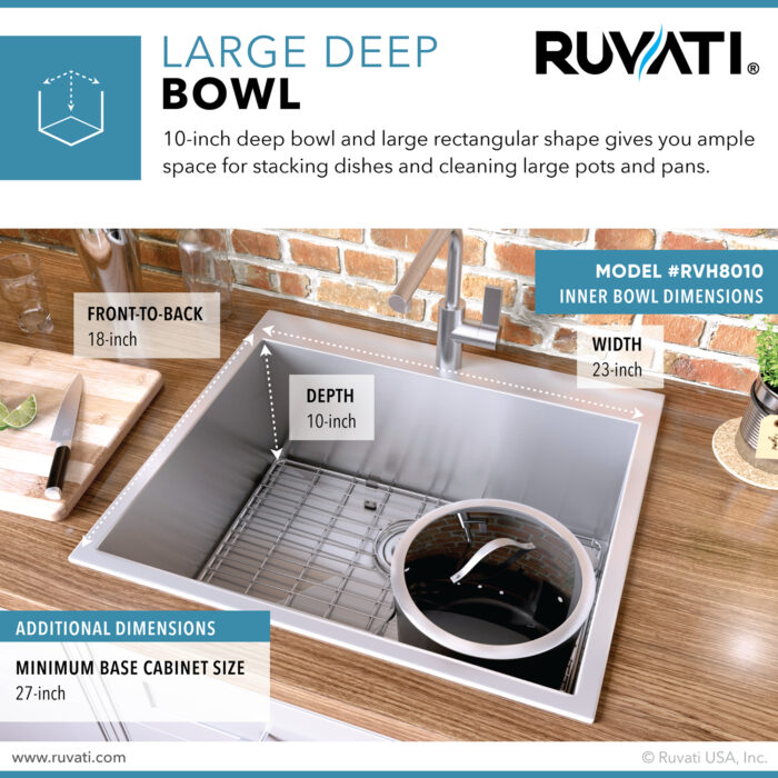Ruvati 25″ Drop-in Topmount 16 Gauge Stainless Steel Single Bowl Kitchen Sink – RVH8010