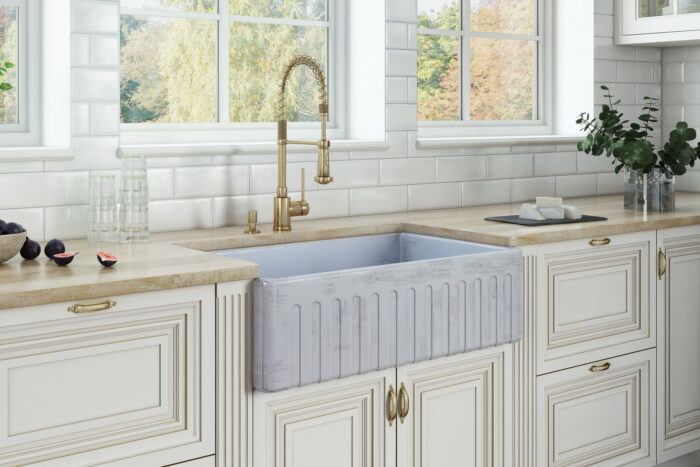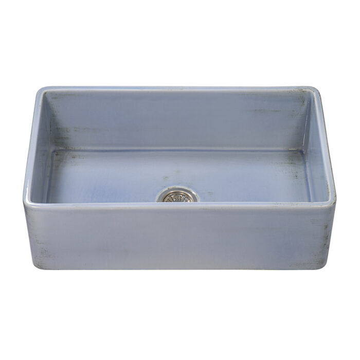 Ruvati 33 inch Fireclay Distressed Finish Farmhouse Apron-Front Kitchen Sink Reversible – Coastal Blue – RVL2300SB