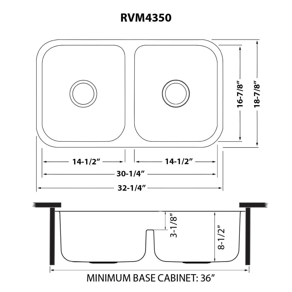 Ruvati 32-inch Low-Divide 50/50 Double Bowl Undermount 16 Gauge Stainless Steel Kitchen Sink – RVM4350